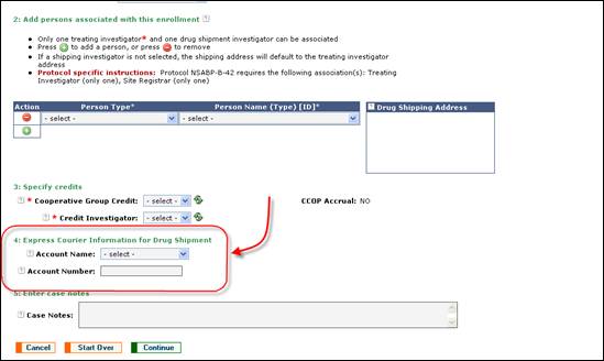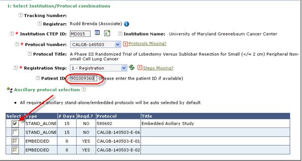 3) Update the displayed information as necessary. All sections of the “Create New” screen can be updated after the registration is initiated except for section 1 (Select Institution/Protocol combinations).