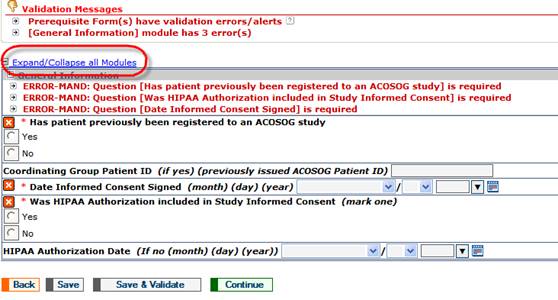 Overrides to protocol requirements may be available on certain studies per Lead Organization guidelines. A “Request Override” button will be displayed next to only those validation errors which allow overrides. To request an override you may click on the “Request Override” button that will appear in the checklist forms as shown in Figure 41.
