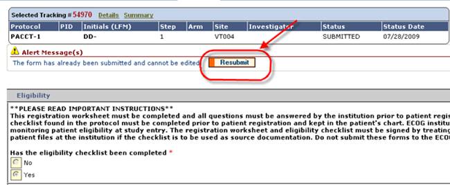 12) Once the Override is approved return to the eligibility checklist and press the “submit” button. If no other validation errors are present the registration will go through.
