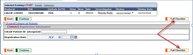 3. Go to the Registration/Randomization section and click on the “Print Full Form” button to print the completed full registration form. This includes the demography screen data along with all checklist forms completed so far.