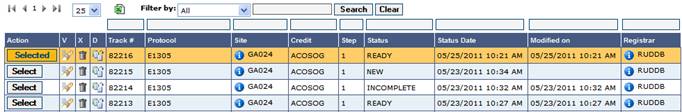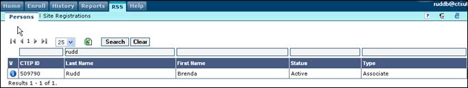 6) If the desired person is not listed click on the arrow keys to navigate to the next range of records. You can also add more records to a single search by specifying whether the results should list 25, 50 or 75 records per page (for additional information on querying registrations please see the “Query Registration Information” section).