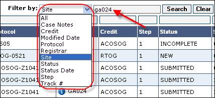 On the Site Registrations tab (under the RSS tab or the Site Registration Search Link) you are able to search on one specific field or any combination of fields. The searchable fields include: