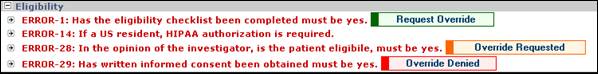 · Inactive – The edit check was inactivated after the override request and the override is no longer required. Resubmit the eligibility checklist.