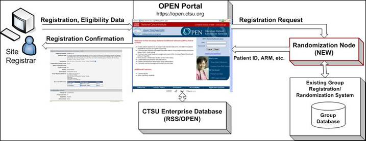 The OPEN portal provides a centralized system which allows patient registrars to register patients to various clinical trials using a uniform web-based interface.