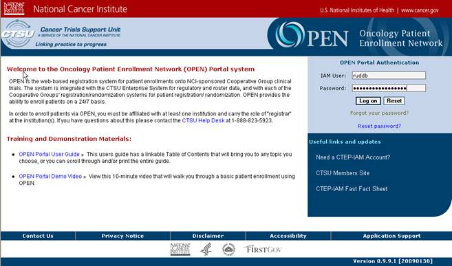 The OPEN Portal application is used to register patients on NCI-sponsored clinical trials that have been activated within the system.