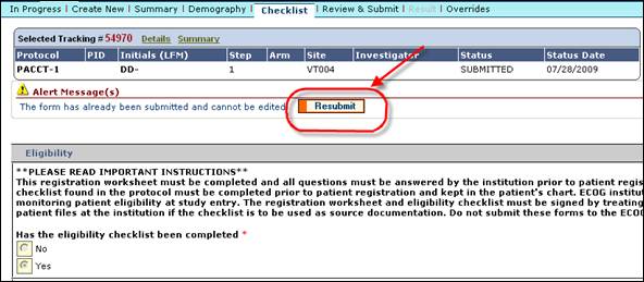Enables patient registrars to enter eligibility checklist data and determine patient eligibility for inclusion on a given clinical trial.