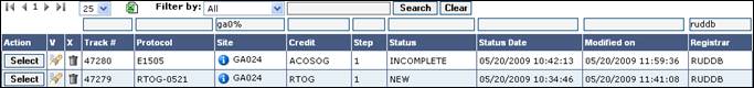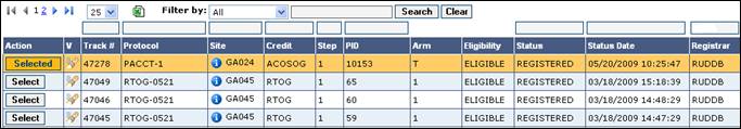 6. If the desired person is not listed click on the arrow keys to navigate to the next range of records. You can also add more records to a single search by specifying whether the results should list 25, 50 or 75 records per page (for additional information on querying registrations please see the “Query Registration Information” section).