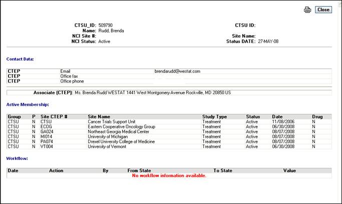The profile section displays information associated with the CTEP-IAM ID of the person who is logged into the OPEN system. All existing data associated with the user’s CTEP-IAM Account will be displayed, if there is no data for that listing it will be blank.