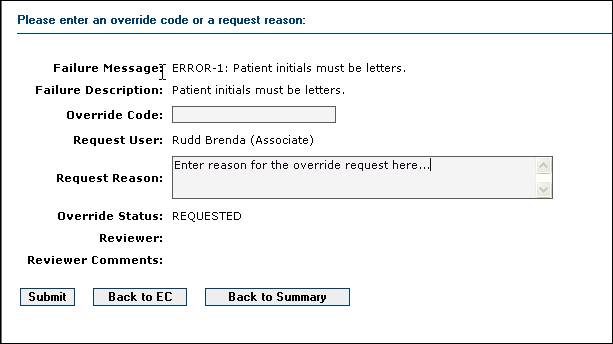 7. Enter the reason for the override request (see Figure 28) in the ‘Request Reason’ field.