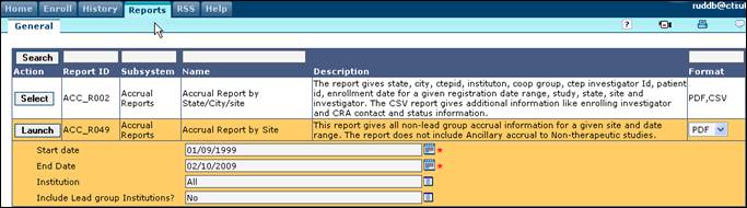 4. Press the ‘Select’ button that corresponds with the desired report. You are now able to enter in criteria that will determine what is returned in your requested report.