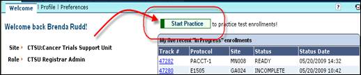 Users will be able to perform a practice registration from the OPEN application. Using the current URL the user is able to switch from a normal working mode to a practice mode to create registrations without actually updating any live data.