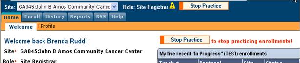 2. The screen will visibly change in color to indicate that you are in test mode, and the “Stop Practice” buttons will be presented.